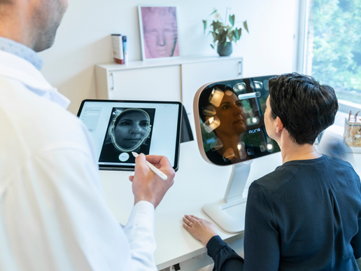 Comprehensive skin analysis to address pores, wrinkles, texture and scoring, red and brown spots and see volumetric changes.